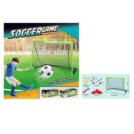 Kompletny zestaw do piłki nożnej: Zestaw zawiera bramkę, piłki, pachołki i pompkę, co pozwala na pełną piłkarską zabawę - idealny do treningów, meczy czy po prostu spędzania aktywnego czasu na świeżym powietrzu.