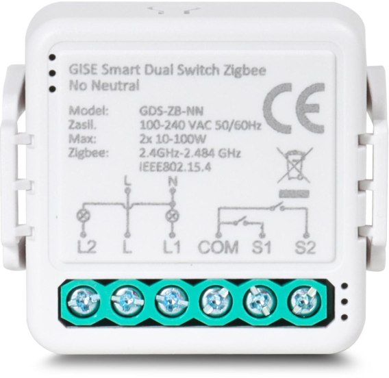GISE Smart Podwójny moduł przekaźnikowy (bez N) Zigbee | Tuya | GDS-ZB-NN GISE