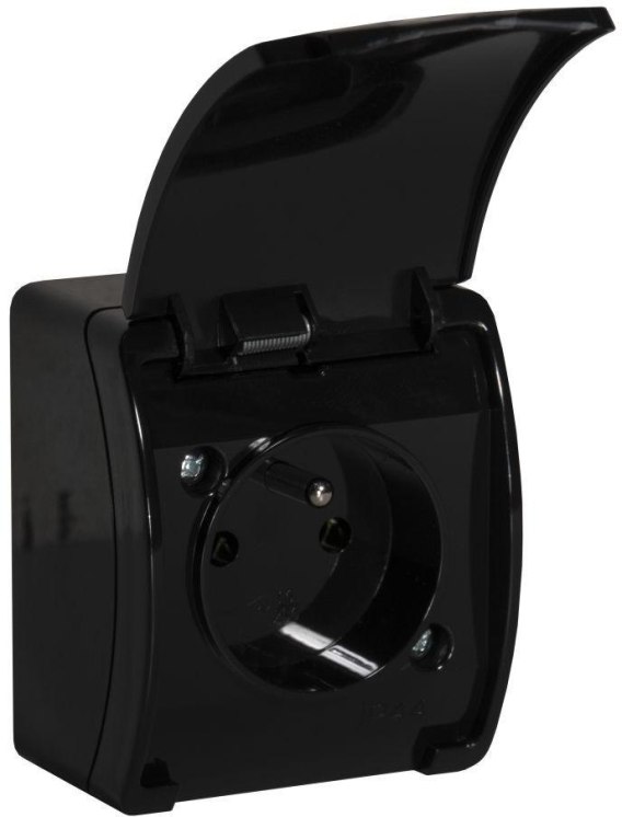 Gniazdo natynkowe pojedyncze z uziemieniem, z klapką VIPLAST KOALA CZARNE IP44 161-05 VIPLAST