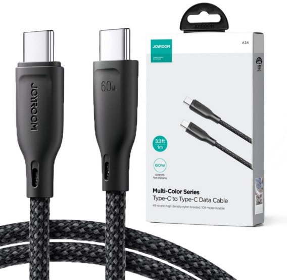 Kabel USB-C / USB-C Joyroom SA34-CC3 100cm 60W 5A PD w oplocie czarny