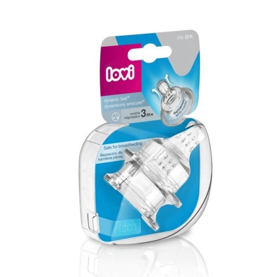Dynamiczny smoczek LOVI do podawania odciągniętego mleka mamy to efekt pracy neurologopedów. Jest zbudowany z niejednorodnych warstw silikonu: miękkiej, cienkiej, wydłużającej się końcówki i szerokiej, twardej, profilowanej podstawy. Dzięki temu nie zaburza odruchu ssania i nie koliduje z karmieniem piersią.