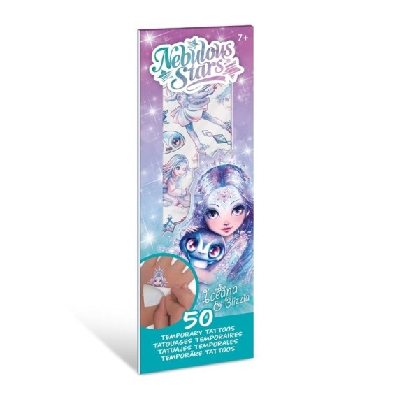 Zestaw tatuaży z bohaterkami Iceaną i Blizzią to prawdziwa gratka dla młodych fanek Nebulous Stars. Utrzymane w fioletowo-morskiej palecie barw, wzory odzwierciedlają urok lodowych krain, delikatnych śnieżynek i magicznych zwierząt. Idealny wybór dla dziewczynek, które lubią wyrażać siebie poprzez subtelne i bajkowe ozdoby.